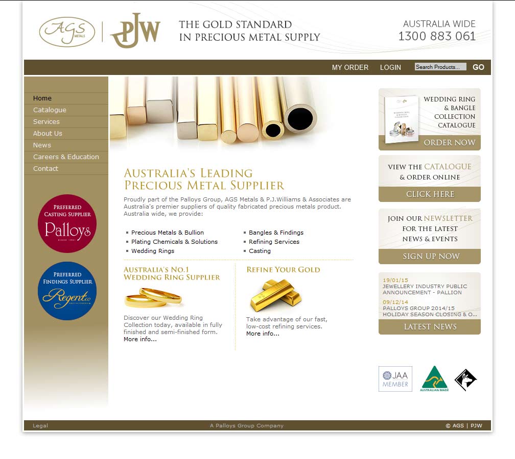 Proudly part of the Palloys Group, AGS Metals & P.J.Williams & Associates are Australia’s premier suppliers of quality fabricated precious metals product.