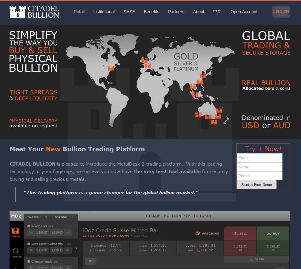 Citadel Bullion are a relatively new Australian precious metals company providing a digital trading hub for users to exchange and invest in physical bullion across the world, utilising the excellent MetalDesk 2 trading platform.