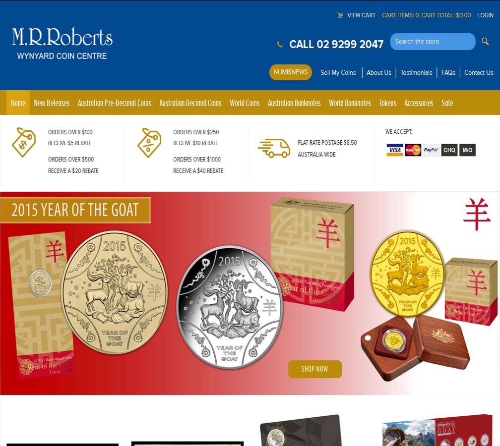 Wynard Coins are a long established numismatic specialist dealer, with a retail location and well stocked e-commerce store. They sell some extraordinarily rare coins and banknotes, amongst which are a good selection of gold and silver collectibles and proof sets.