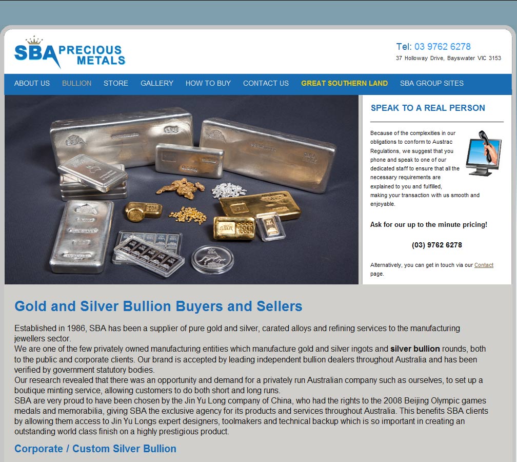 SBA Precious Metals are part of the SBA Group who buy, sell and refine precious metals producing some of the best known home-grown Australian bullion products, principally investment bars but also rounds including semi-numismatic pieces.