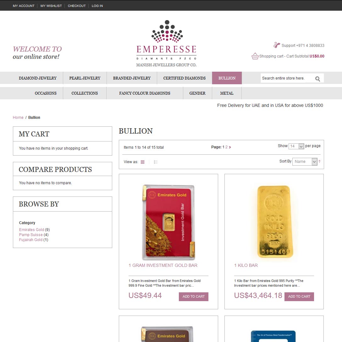 Emperesse are a long-established and trusted precious metals dealer, dealing principally in fine jewellery both online and from multiple retail locations. They offer a good selection of investment-grade bullion bars alongside their more ornate product lines.