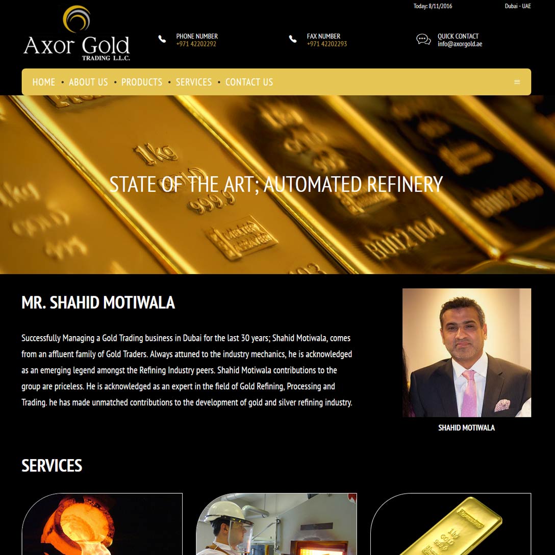 Axor Gold are a relatively new (2014) full-service precious metals dealer based out of the Deira Gold Souk, offering assaying, refining, casting and minting of bullion bars and grains – alongside the buying of precious metals scrap.