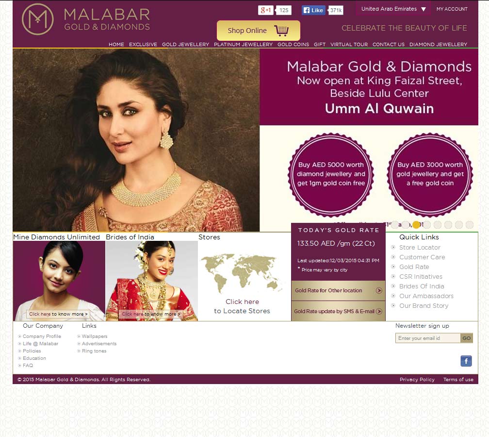 Malabar Gold and Diamonds are multinational jewellers with retail locations across the Middle East. Their newest UAE store opened in Um Al Quwain, March 2015. Although principally a jeweller, Malabar do sell bullion coins and smaller bullion bars by arrangement, bringing investment grade bullion to Um Al Quwain for the first time.