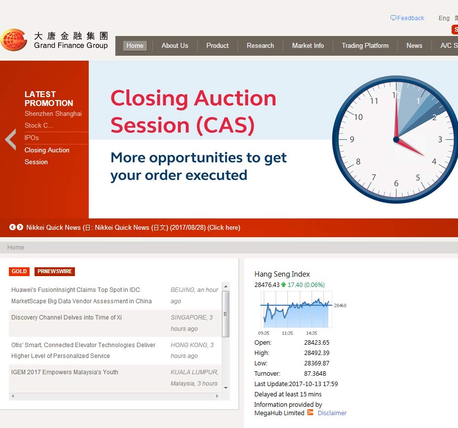 Grand Finance Group is a diversified financial services company providing a range of financial products and services to institutional and retail clients. Its main businesses include global securities, futures, and bullion brokerage, corporate finance, and asset management and fund investment.