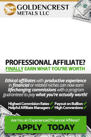 By using these links, you will qualify to apply for membership at GoldAffiliate.org my free inner-circle networking tool, mentoring and resource center for professional gold affiliates.