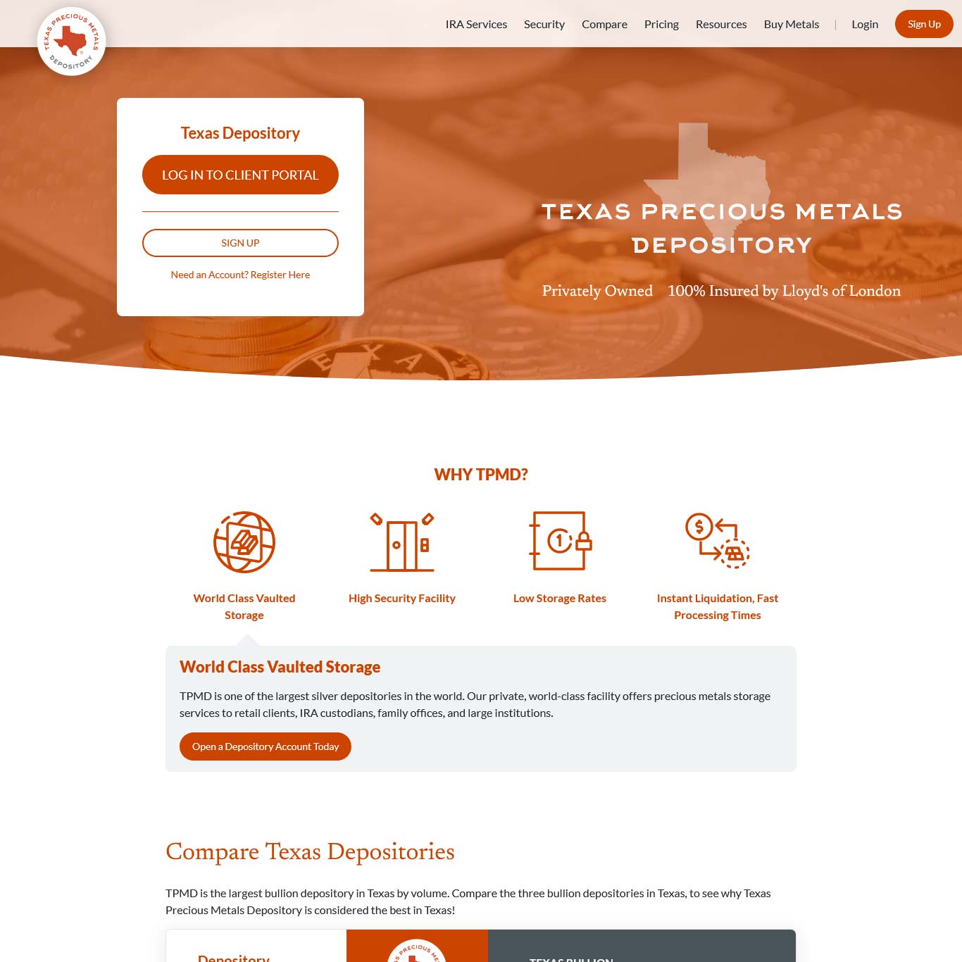 Not to be confused with state-run Texas Bullion Depository, Texas Depository is a 100% private facility operated by one of America’s leading bullion dealers, Texas Precious Metals.
