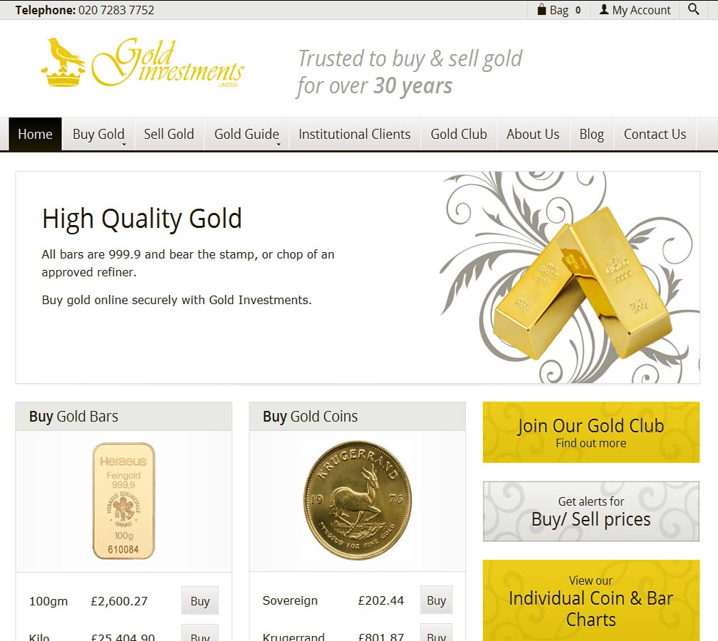 Gold Investments Ltd are a long established London based precious metals dealer, who buy and sell bullion bars and coins, dealing with individual and institutional investors. As well as selling physical metals they run a popular private members “gold club” which helps with portfolio management and opens up a larger number of potential investments.
