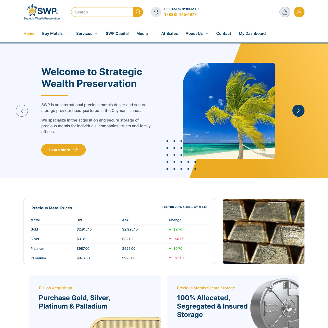 Strategic Wealth Preservation (SWP) is an international precious metals dealer and secure storage provider headquartered in the Cayman Islands. The company owns and operates a large, Class III UL rated vault in Grand Cayman and has sales representatives located in Canada.