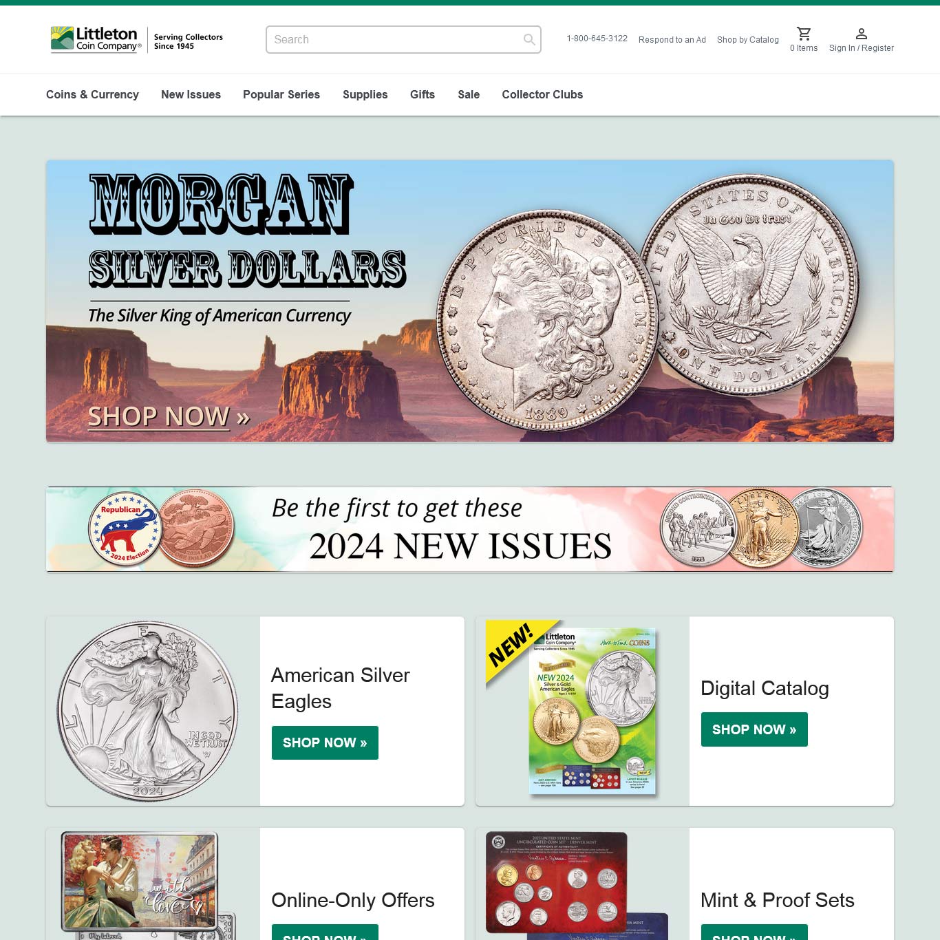 Littleton Coin Company are one of the best known national coin and banknote dealers, established over 70 years and operating an incredibly well-stocked e-commerce site. Known as much for their packed catalog, “on approval” service and profit-share scheme Littleton place customer service at the forefront of their business. Alongside collectibles, numismatics, Littleton Coin sell a wide range of bullion bars and coins.