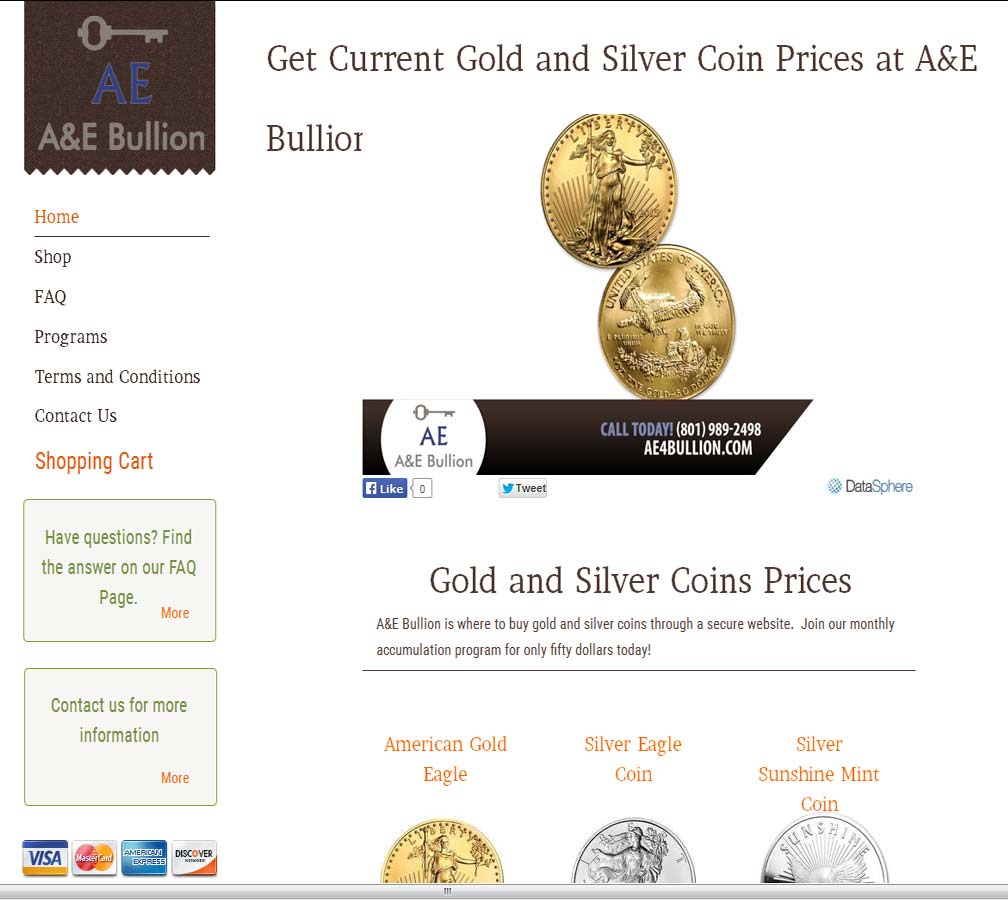 A&E Bullion are newly established online precious metals dealers based out of Murray, Utah and carry a good quantity of investment grade bullion for sale through their easy to operate e-commerce facility. They also provide a purchasing program allowing clients to invest using dollar cost averaging.