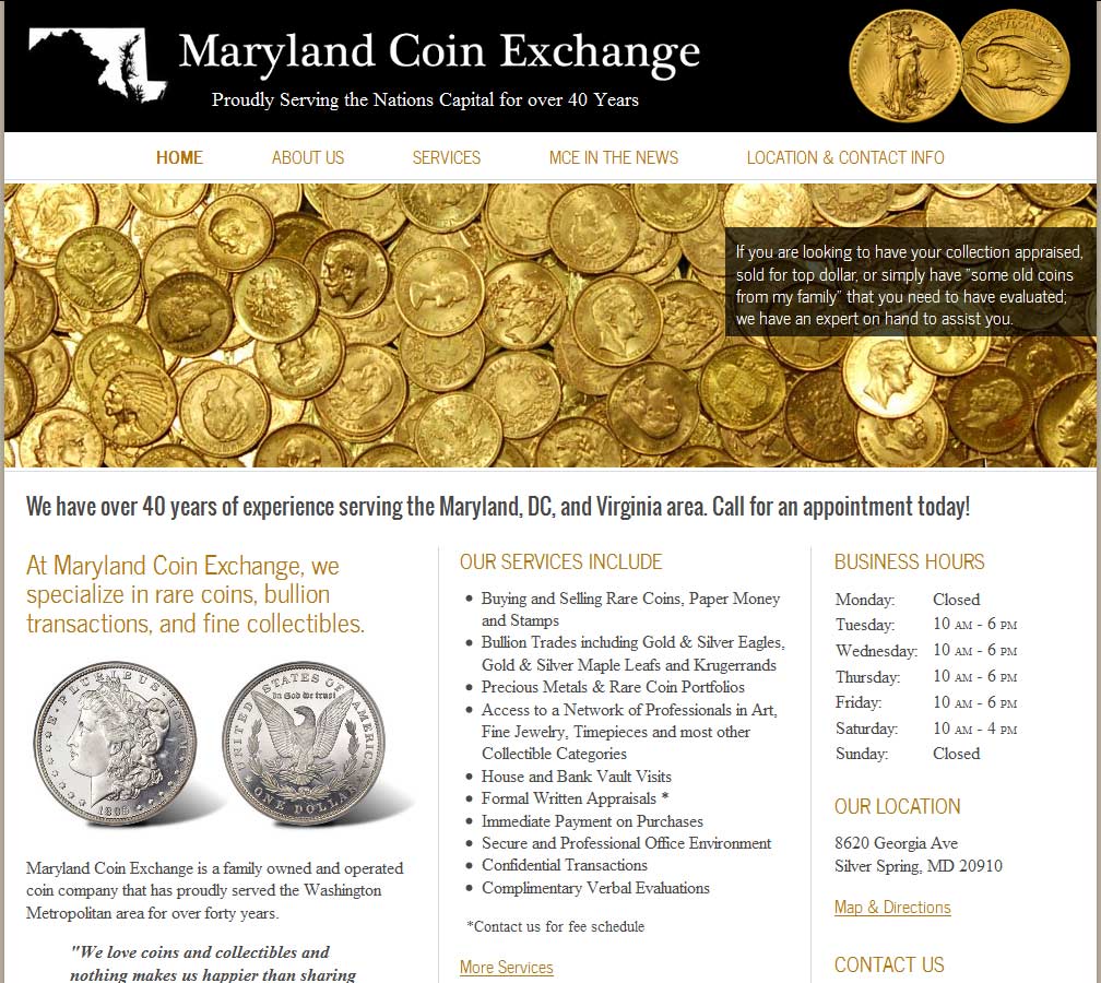 Maryland Coin Exchange are long-established precious metals dealers, specializing in numismatic, collectible and rare coins although they also buy and sell regular investment grade bullion coins.