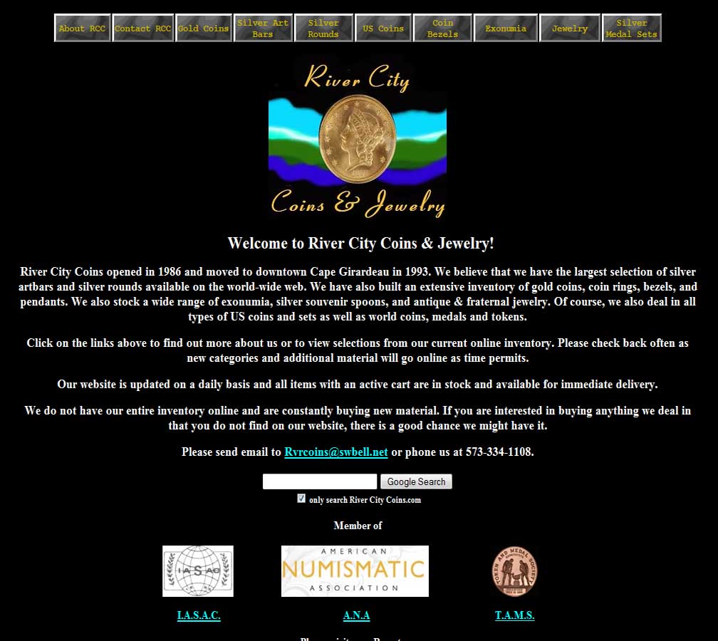 River City Coins opened in 1986 and moved to downtown Cape Girardeau in 1993. We believe that we have the largest selection of silver artbars and silver rounds available on the world-wide web.