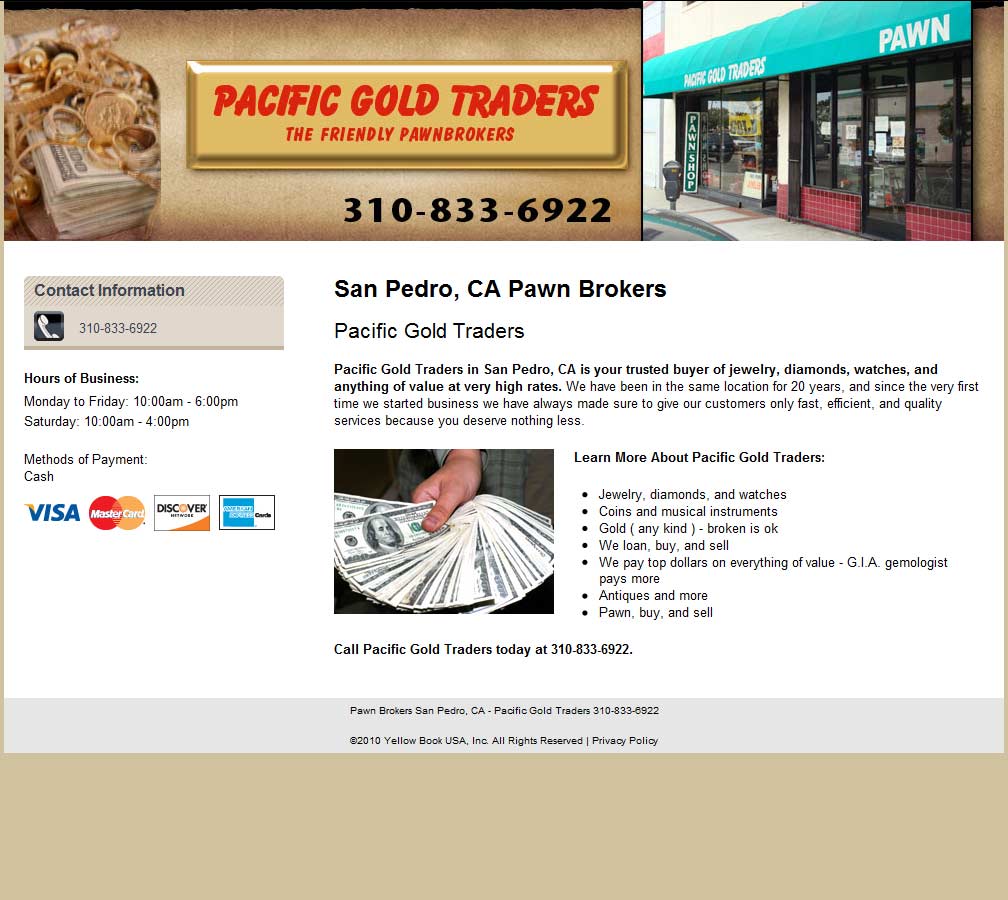 Pacific Gold Traders are a San Pedro, California based pawnbrokers specializing in precious metals, bullion coins and bars and scrap jewelry.