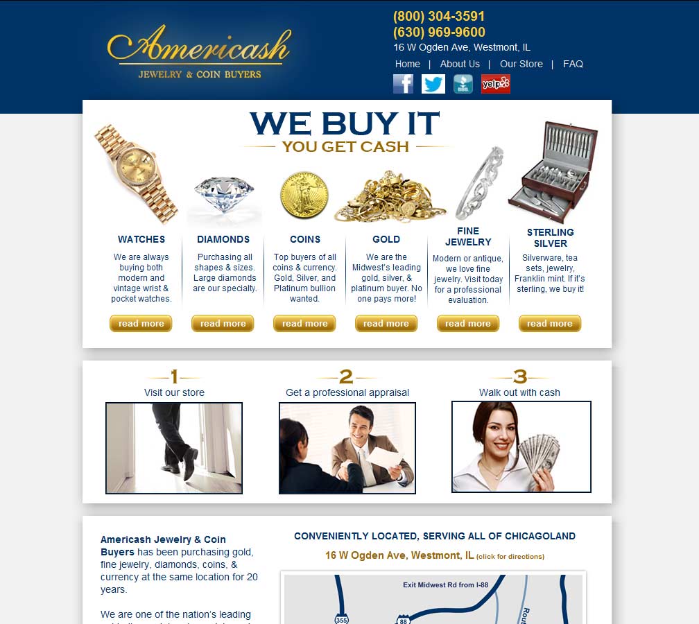 Americash Jewelery & Coin Buyers are well established precious metals dealers based in Westmont, Illinois specializing in buying and selling bullion bars and coins, numismatics, collectibles, rarities and scrap jewelry.