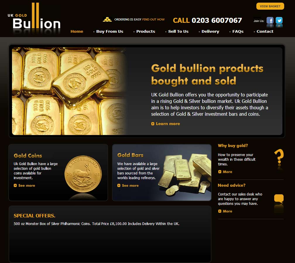 UK Gold Bullion are the UK division of Irish Gold and Silver Bullion Limited (Dublin), based in Hatton Gardens, London, selling nationally through their website. They carry a good range of standard gold and silver bullion bars and coins.