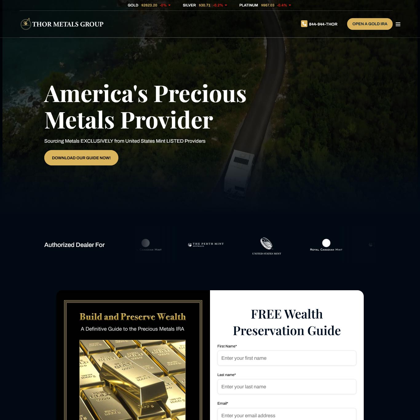 Thor Metals Group are a recently established (2023) bullion dealer specializing in helping diversify and hedge retirement accounts using precious metals.