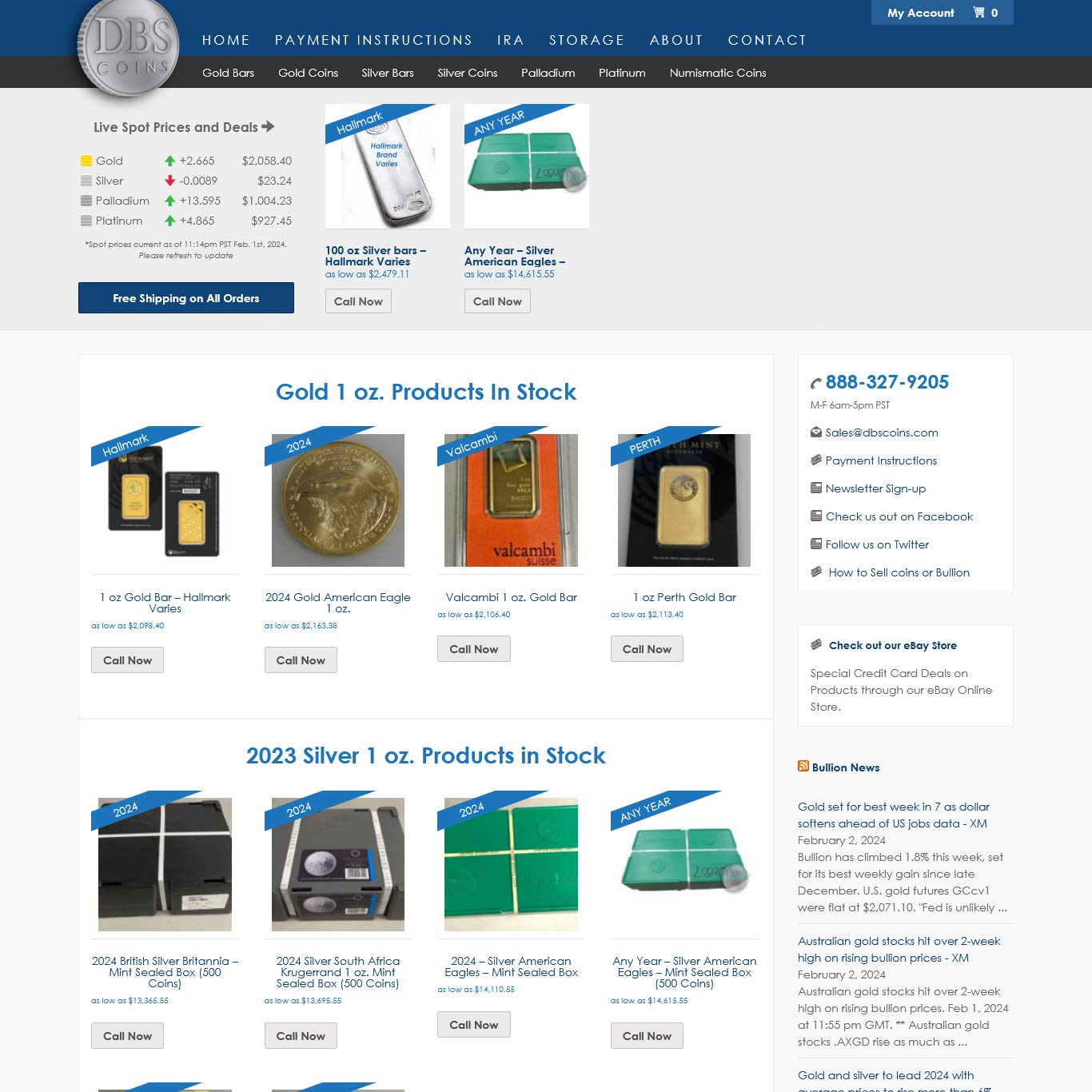 DBS Coins are a long established and popular family run precious metals dealer selling nationally through a well-stocked e-commerce site. They sell bullion bars and coins, numismatics and collectibles as well as providing gold IRA services.