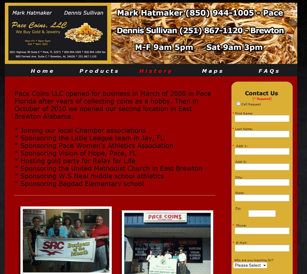 Pace Coins are a small but friendly precious metals dealer based in Pace, Florida and Brewton, Alabama. Principal lines of business are numismatic and modern bullion coin sales as well as the buying of unwanted gold and jewelry cleaning/restoration.