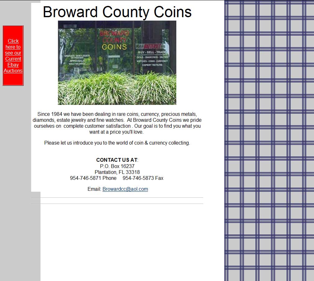 Broward County Coins are a local precious metals dealer buying and selling bullion bars, coins, numismatics and collectibles from a retail unit in Tamarac, Florida – and nationally/internationally through an eBay powered store.