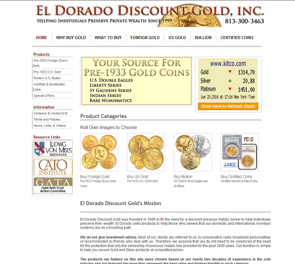El Dorado Discount Gold was founded in 1999 to fill the need for a discount precious metals broker to help individuals preserve their wealth.