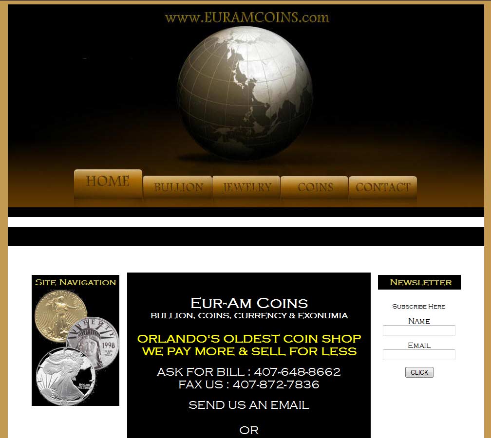Eur-Am Coins sell precious metals bullion, coins and jewelry locally from their retail location in Orlando, Florida and nationally from an eBay store.