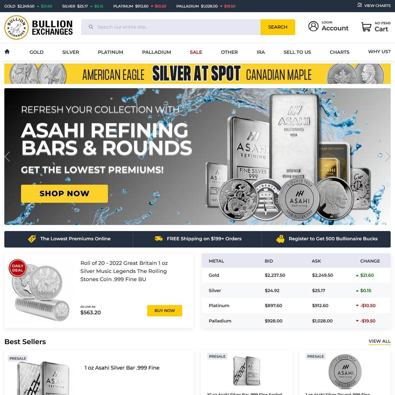 Bullion Exchanges are a well established precious metals dealer based in central New York, best known for their daily deals. As well as selling very low premium bullion bars, coins and numismatics, Bullion Exchanges runs a loyalty program where customers earn “Bullionaire Bucks”.