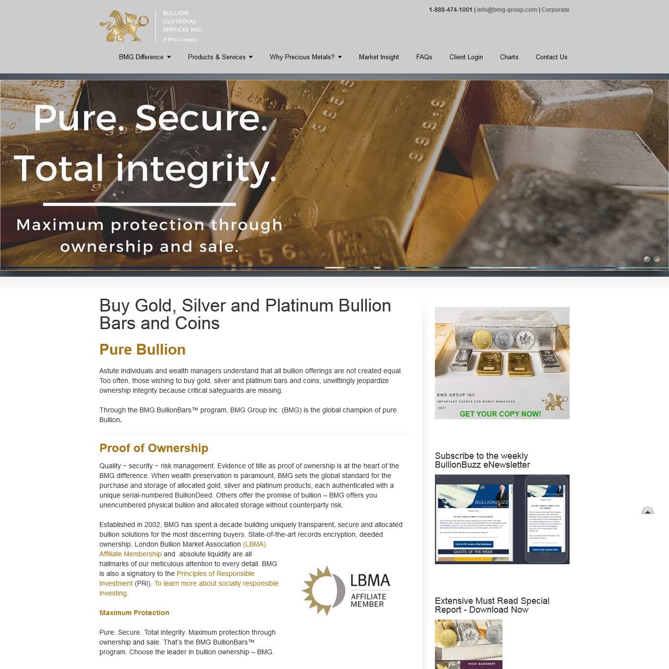 BMG (Bullion Custodial Services Inc.) are a Canadian company with huge international presence and BMG Bullion Bars is their bullion investment section. They offer larger bullion bars for high net worth individuals and corporate investors, through the BMG BullionBars™ investment program. They place enormous emphasis on proof of ownership and security – something which can be lacking in other off-shore gold storage jurisdictions.