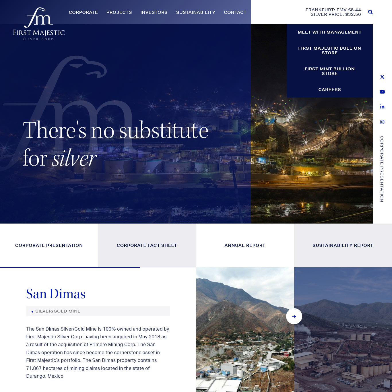 First Majestic owns 100% of three producing mines: the San Dimas Silver/Gold Mine, the Santa Elena Silver/Gold Mine and the La Encantada Silver Mine.