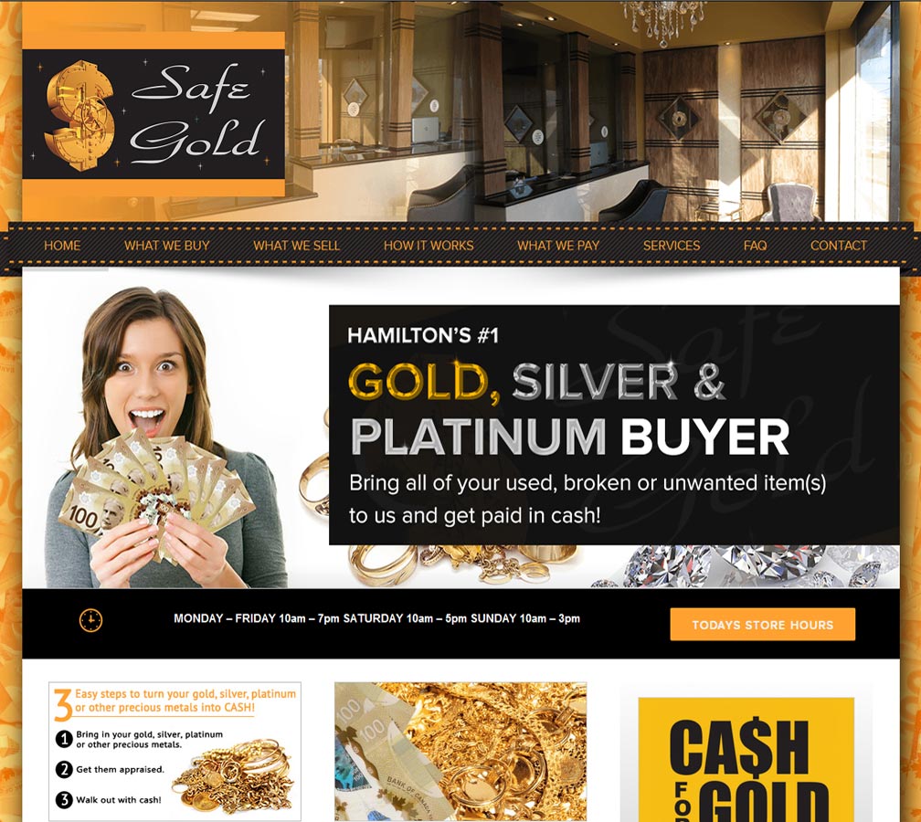 Safe Gold are a relatively new precious metals dealer, specializing in scrap gold and unwanted jewellery, and covering the Hamilton, Ontario area. They provide valuations, discreet pawning services, and buy and sell precious metals, jewellery and watches from their busy store in central Hamilton.