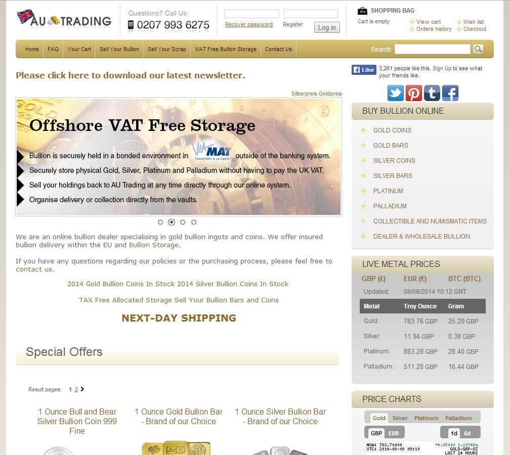 We are an online bullion dealer specialising in gold bullion ingots and coins. We offer insured bullion delivery within the EU and Bullion Storage.