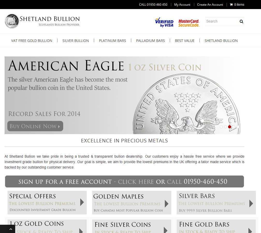 Alongside their claim to fame of being the most Northerly UK precious metals dealer, Shetland Bullion have a very good selection of bullion bars and coins available on an easy to navigate e-commerce website.