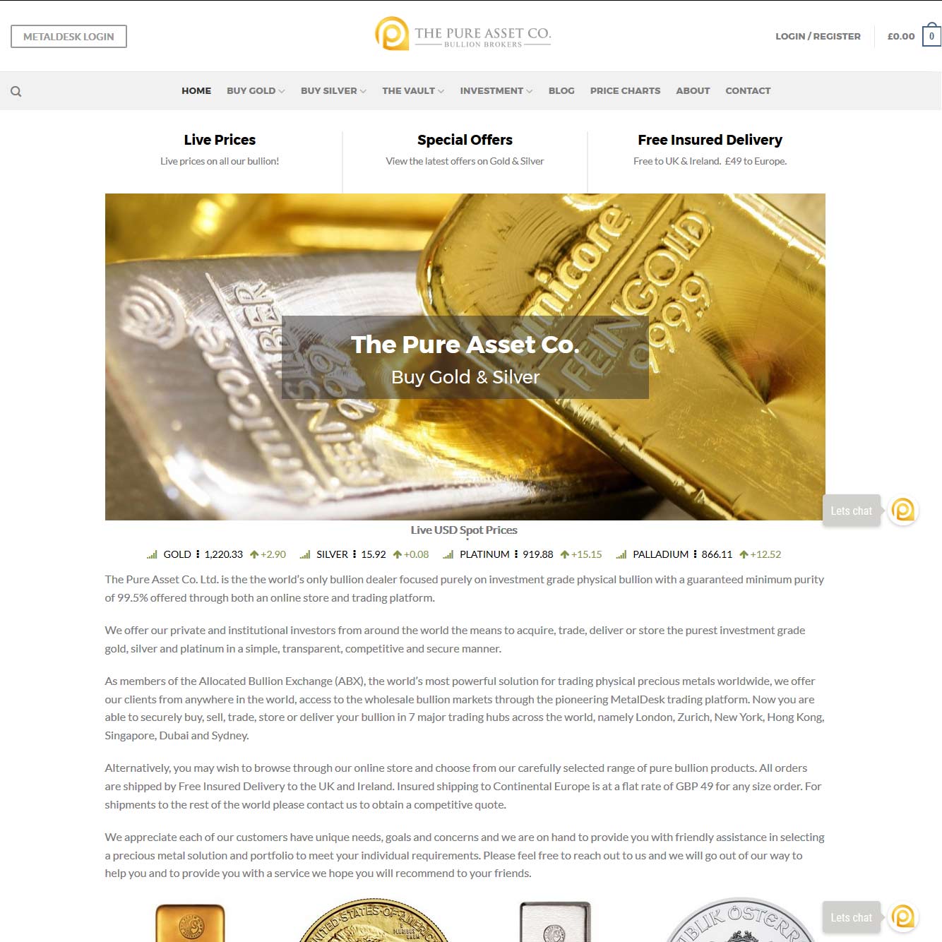 The Pure Asset Co. Ltd. is the the world’s only bullion dealer focused purely on investment grade physical bullion of a minimum purity of 99.5% in the case of gold and 99.9% in the case of silver offered through both an online store and trading platform.
