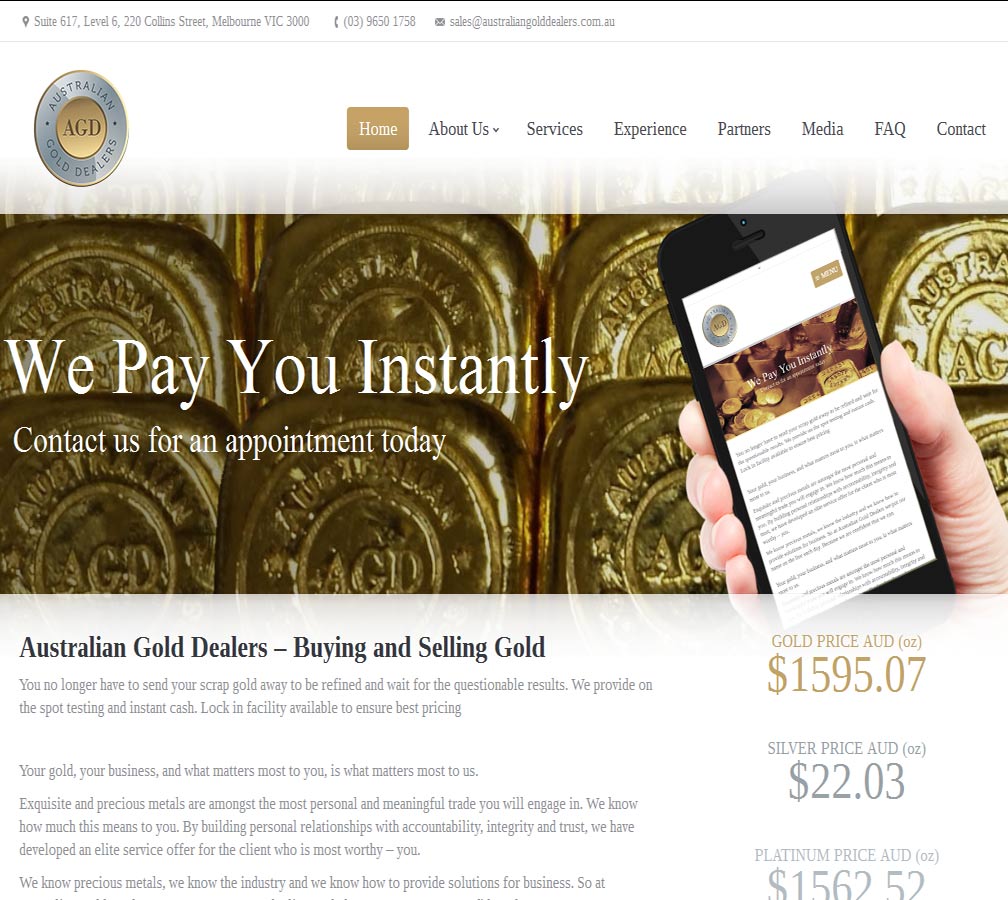 Australian Gold Dealers are a large scale national gold buyer working with partners across Australia to reclaim and process scrap gold and unwanted jewellery. As well as providing this service they sell bullion bars and coins directly and through trade affiliations.