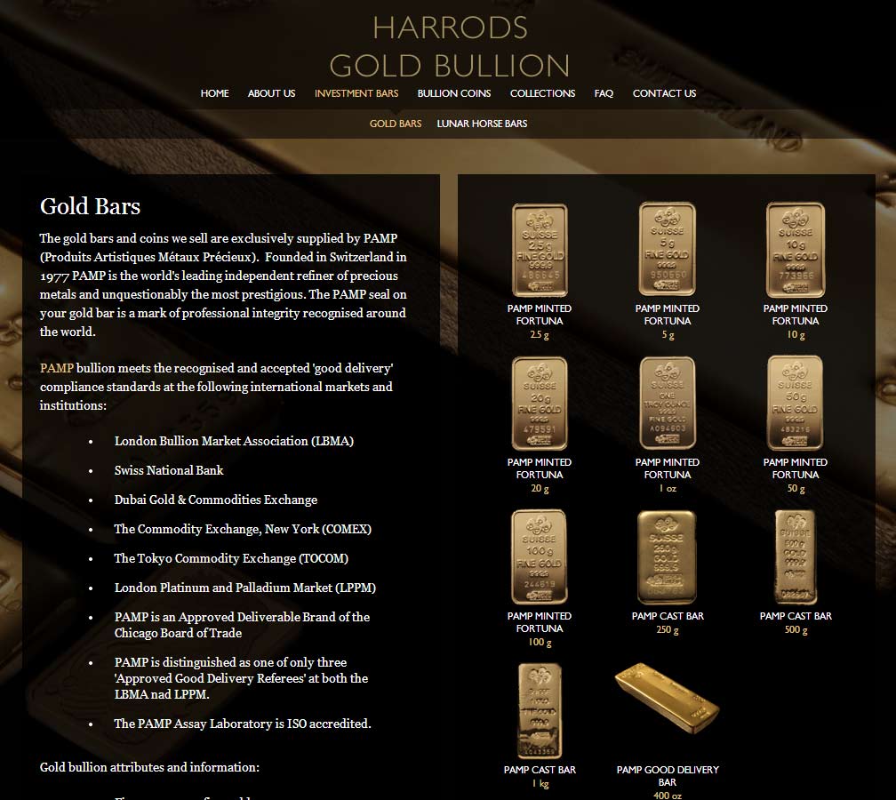 I know I can buy PAMP bars anywhere but it’s not every bullion dealer where you’re given a quiet room for some tea and cake. Call me a snob, but Harrods takes some beating and their prices are broadly comparable to the bucket shops online. Banking with Harrods is of course another plus.