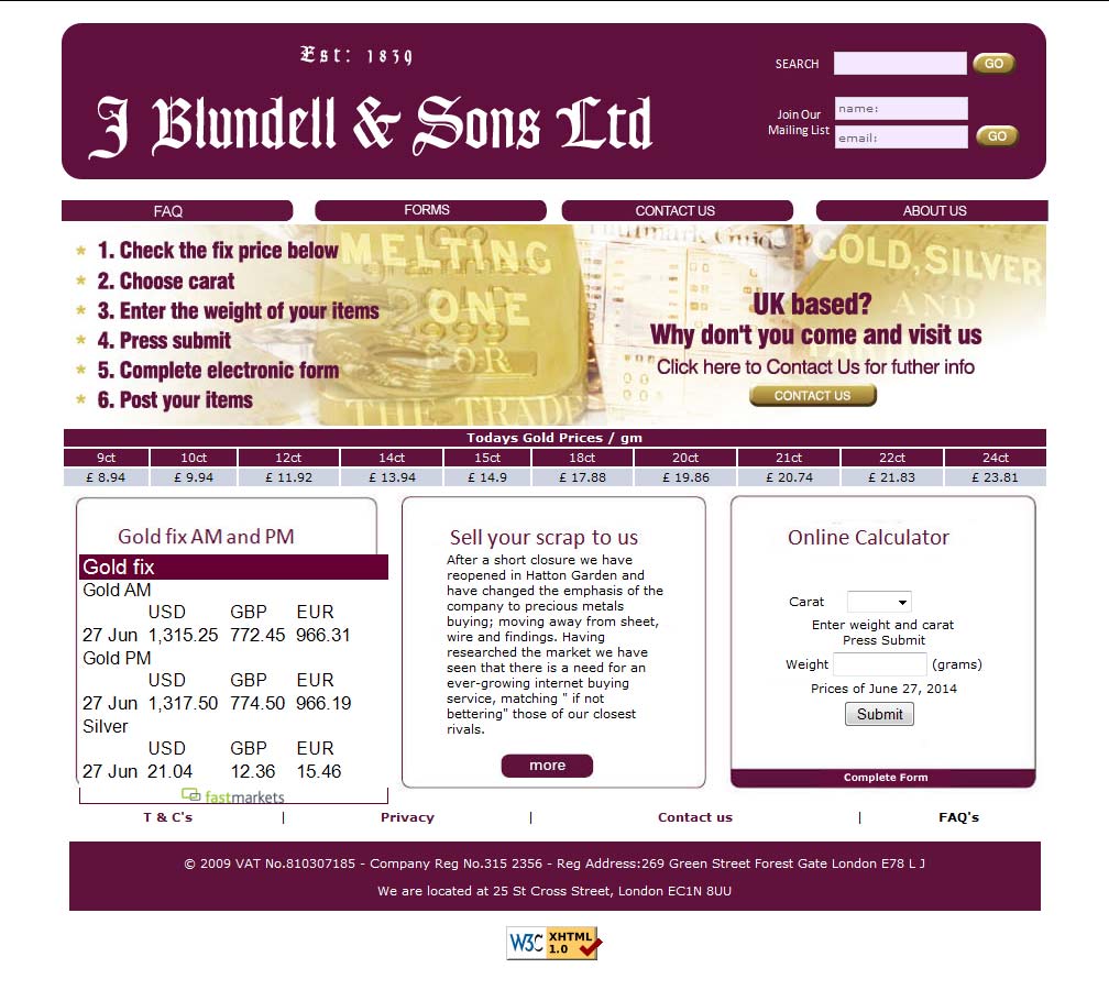 J Blundell & Sons must be one of the oldest UK precious metals dealers originating in 1839 and incorporated in 1996. Originally goldsmiths, the company now concentrates on buying bullion bars and coins, as well as scrap and unwanted jewelry.