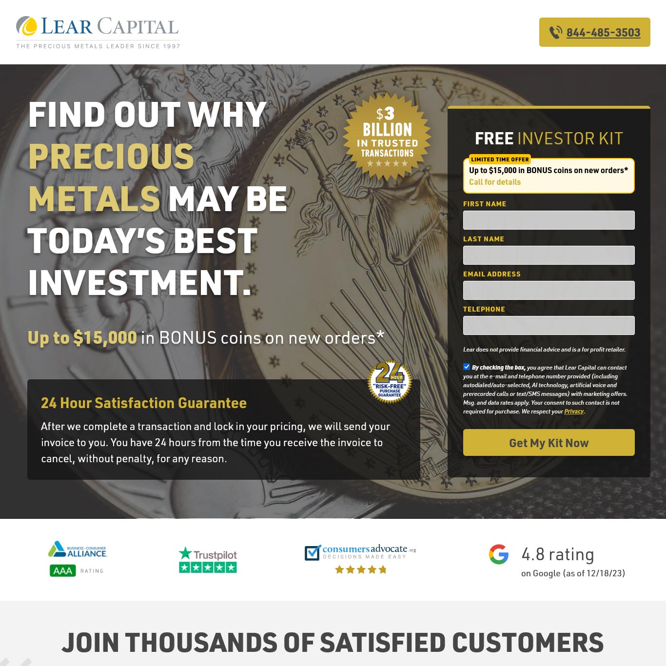 At Lear Capital, your long-term financial security is our main concern. We have been America’s Precious Metals leader since 1997, and we strive to not only earn your business but to maintain it with superior service.