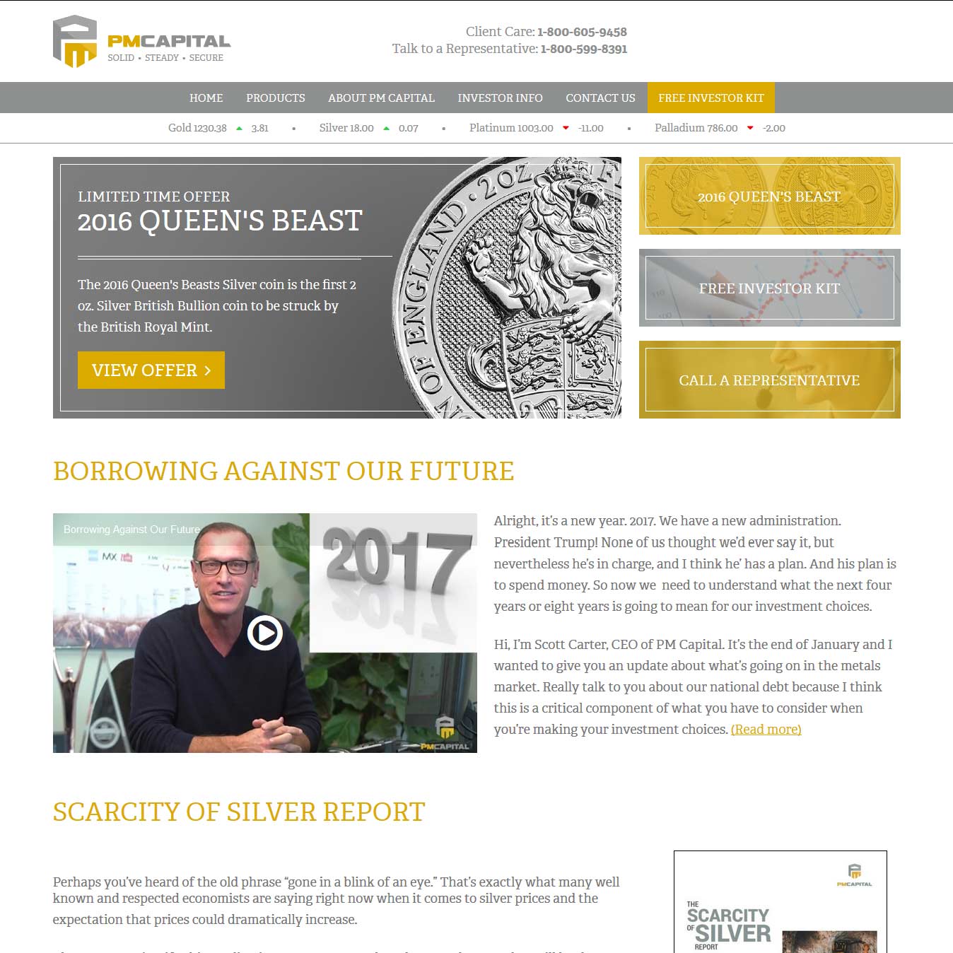 I have been considering buying gold for a number of years and recent events led me to actually go ahead and make that investment. I gave PMC a call and spoke with Scott Carter who I understand is the company owner. He was very good and clearly knows what he’s talking about and he talked me through a number of options. I made a small test buy and am very happy with how everything proceeded. I am now about to add a more substantial quantity of gold and silver to my portfolio ahead of what Scott says could be a troubling time in the financial markets.