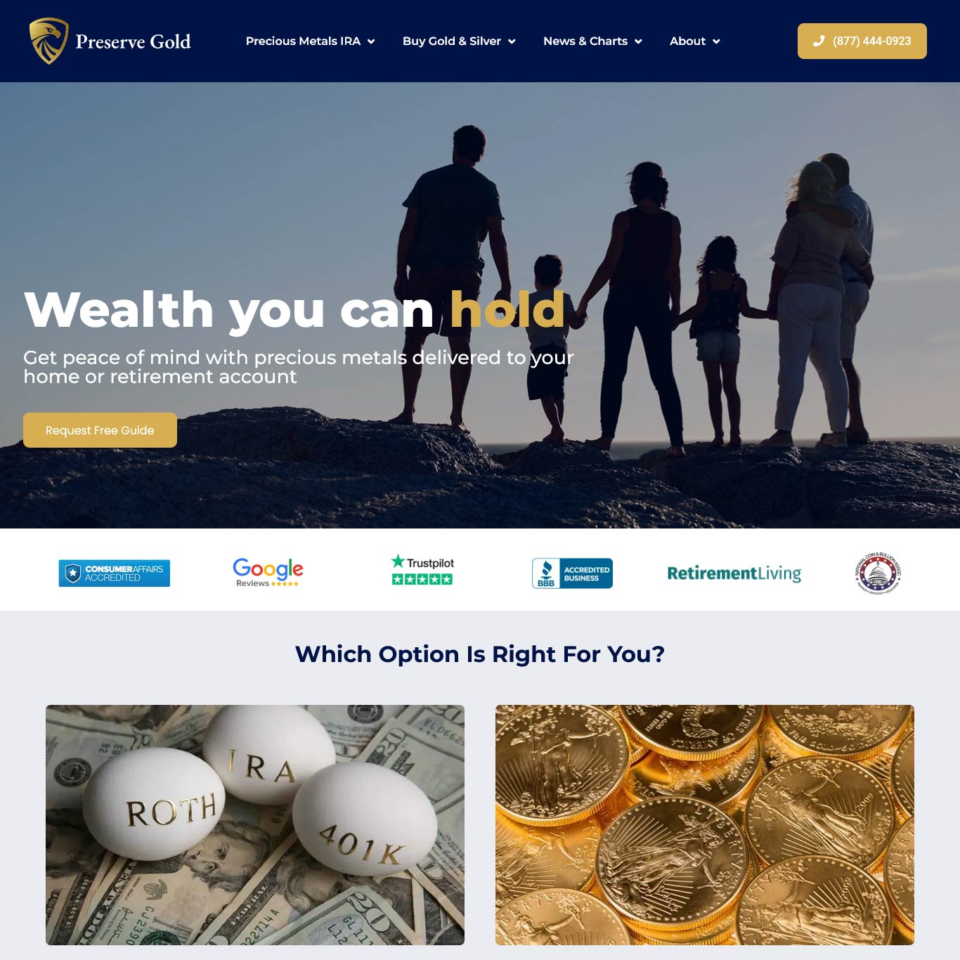 Preserve Gold is a relatively new (2022) precious metals dealer specializing in helping customers to diversify their investment portfolios and retirement accounts with physical precious metals.