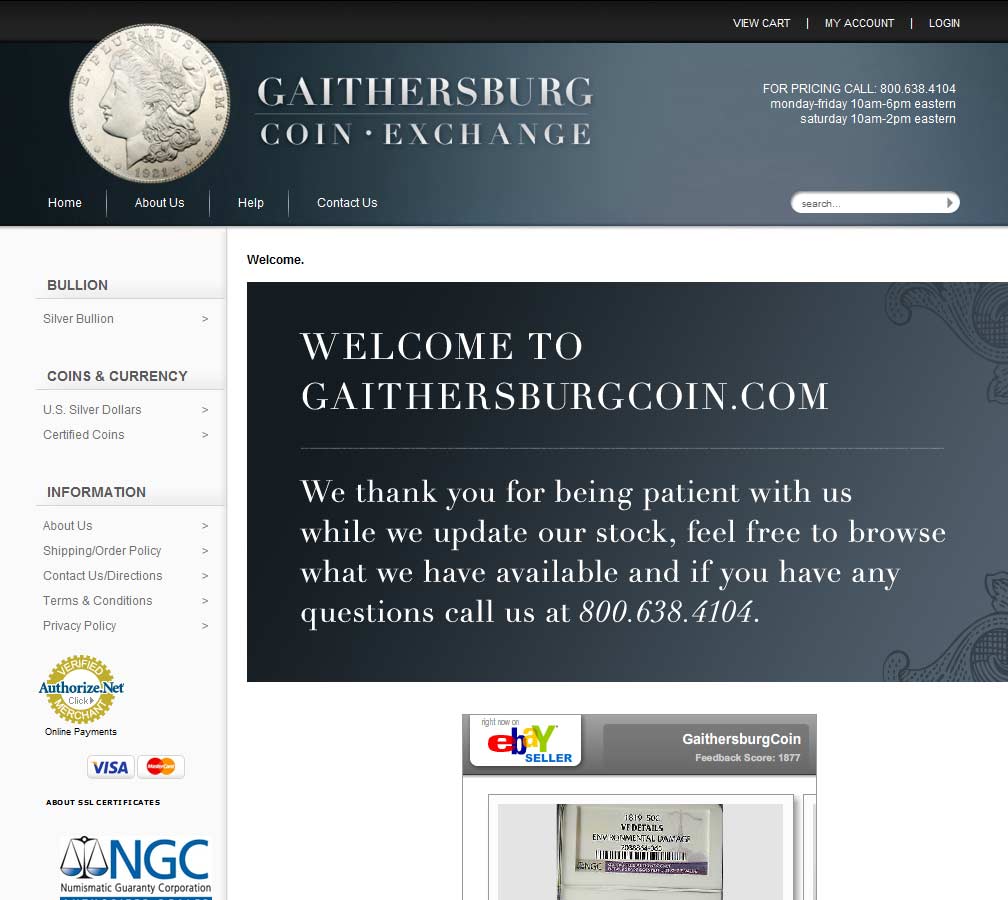 Gaithersburg Coin Exchange are a well-known and long-established precious metals dealer specializing in rare, collectible and numismatic coins alongside regular bullion coins. Gaithersburg Coin Excahange deals locally, nationally and internationally through their retail location, e-commerce website and eBay storefront.
