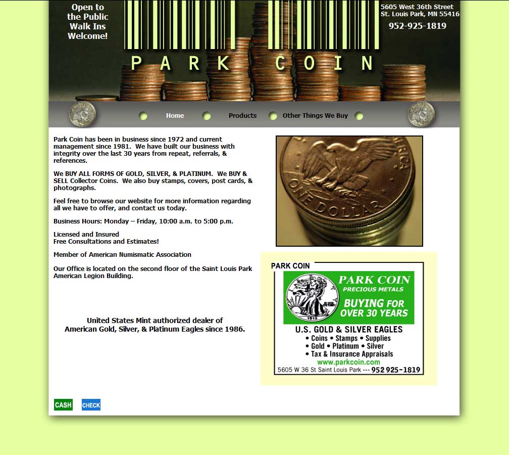 Park Coin are local St. Louis, Minnesota precious metals dealers, specializing in bullion, numismatic, rare and collectible coins, which they buy, sell and apprasie from their central retail premises.