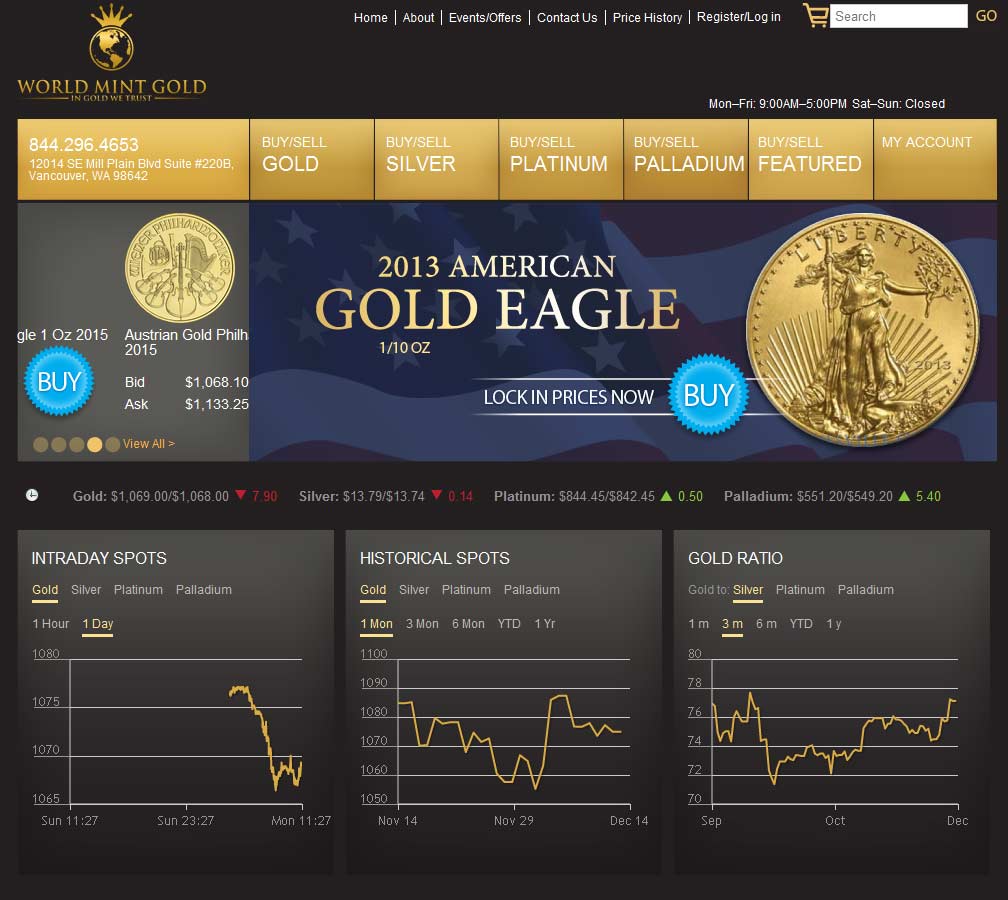 World Mint Gold is a newly established (2015) trading arm of Coins Since 1994. A national gold dealer based out of Vancouver Washinton, World Mint Gold operates a well stocked e-commerce store selling bullion bars and coins at low premiums over spot.