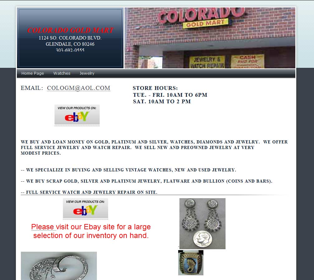 Colorado Gold Mart buys and sells precious metals bullion bars and coins, numismatics and rarities – as well as scrap jewelry – from a retail location in Glendale, Colorado and a thriving eBay Store.