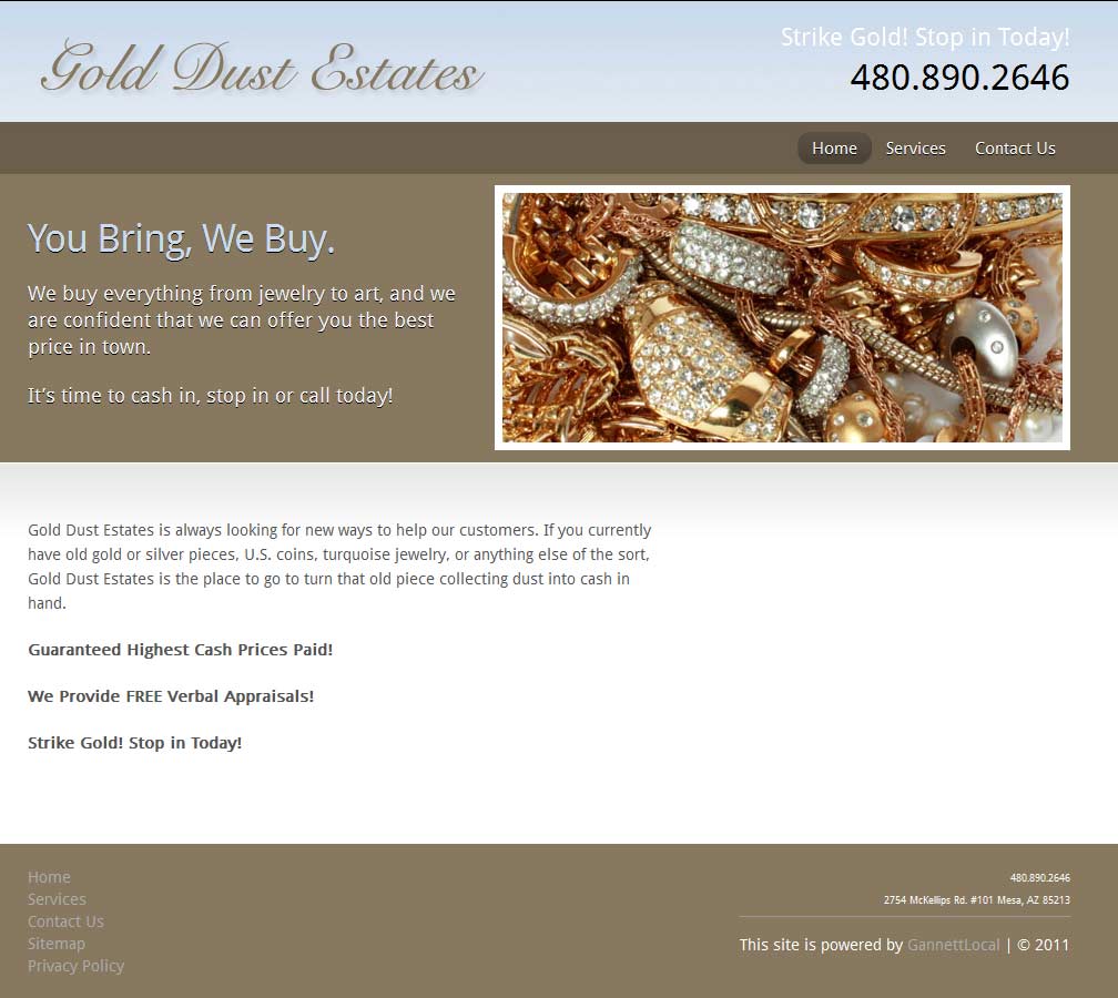 Gold Dust Estates are in the business of buying and selling precious metals alongside other collectibles, rarities, antiques and artifacts, working from a retail premises in Mesa, Arizona.