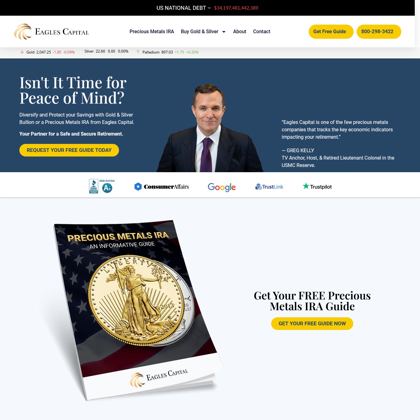 As a premier dealer of precious metals in the United States, Eagles Capital is committed to helping customers discover how gold, silver and other precious metals can help protect their retirement in the face of current and future economic instabilities. This commitment is one of numerous factors that separate us from other precious metals dealers and enables us to consistently help our customers achieve financial peace of mind.