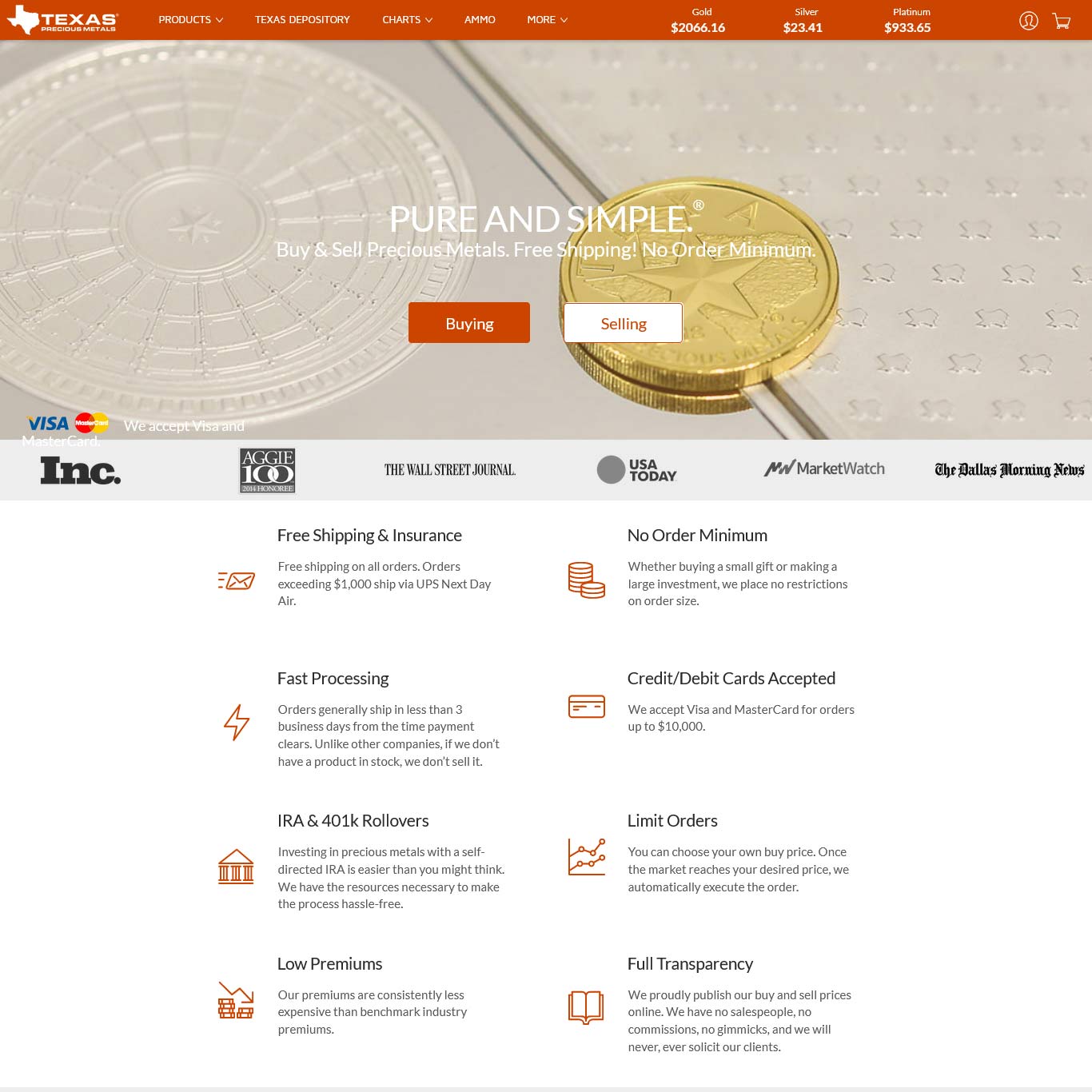 Texas PM are straight up good guys and have gone beyond the call of duty helping me get myself diversified into gold and silver. They do things right at Texas and the difference between them and another company I approached are night and day. By phone or email theyve been nothing but understanding of my needs and taken a lot of time to help me make the right decisions. I’m no expert and I could have easily been taken for a ride as you hear happening to people with collectible coins but Texas said “bullion. stick to bullion” so I did!