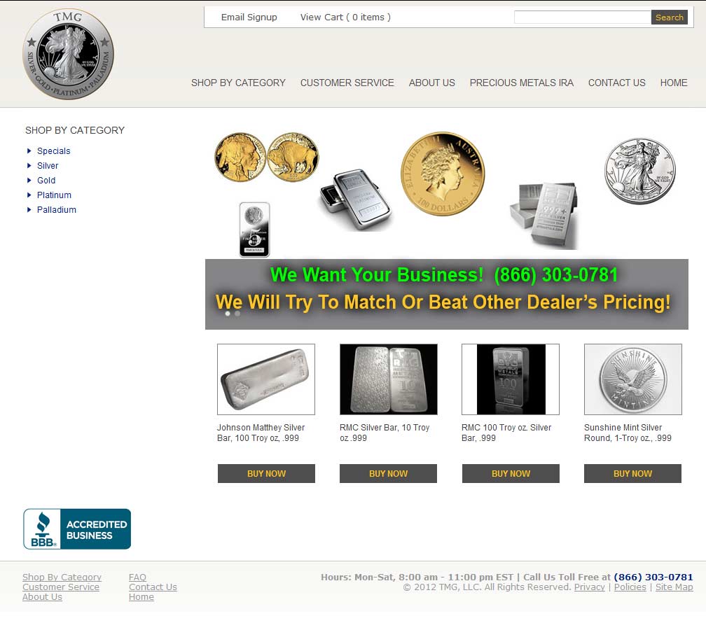 True Metals Group was opened in 2008 with an emphasis on customer service and quality products. Since then, TMG has quickly grown into one of the largest precious metals dealers in the nation.