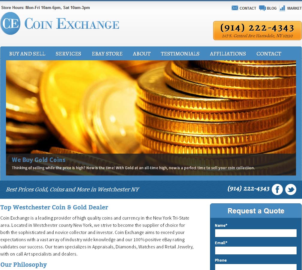 Coin Exchange NY are a well established precious metals dealer with a busy local retail presence in Hartsdale NY and national coverage through a well stocked eBay store. As well as bullion and numismatic coins, they buy and sell diamonds, high-end watches and buy scrap or unwanted jewelry.