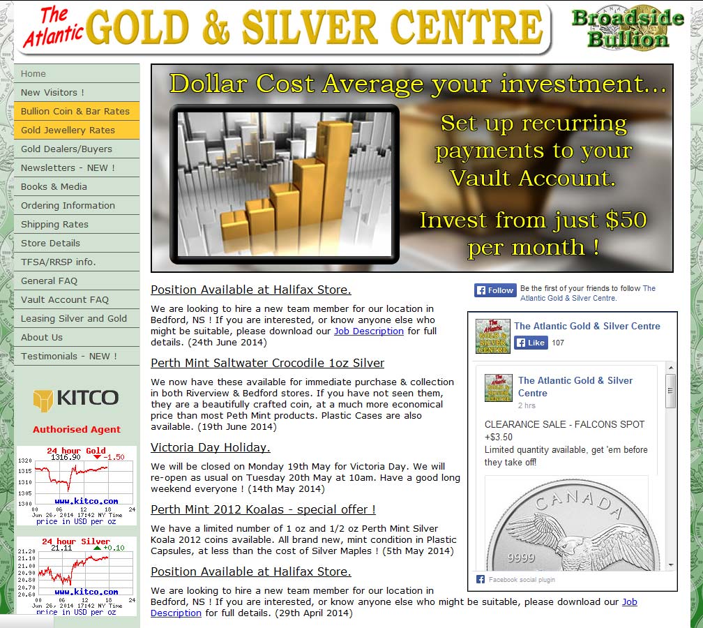 Broadside Bullion AKA The Atlantic Gold and Silver Center are a relatively new precious metals dealer with retail stores in New Brunswick and Nova Scotia. They buy and sell bullion bars and coins as well as numismatics and rarities and offer investment advice for wealth-protection through precious metals and vault-stored accounts for clients who don’t need physical delivery.