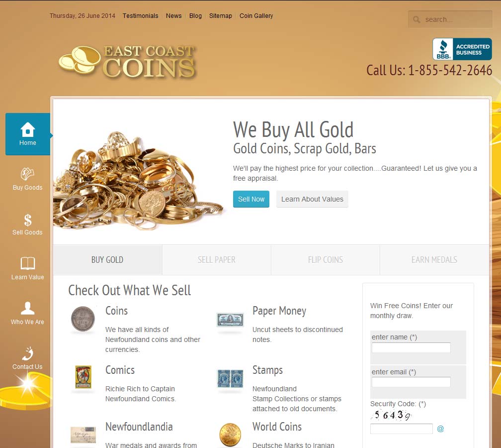 East Coast Coins are a well known Newfoundland precious metals dealer based in central St John’s and specializing in bullion, numismatic and collectible coins. East Coast Coins also sell Newfoundland-specific collectibles, paper currencies and stamps.