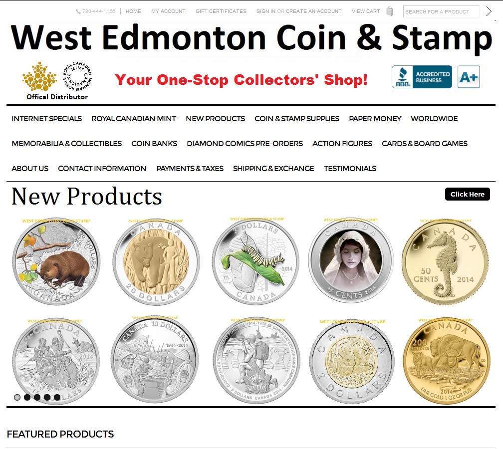 West Edmonton Coin & Stamp is one of the Royal Canadian Mint’s largest direct distributors. We have been operating in our retail location in alliance with the Better Business Bureau for over 25 years.